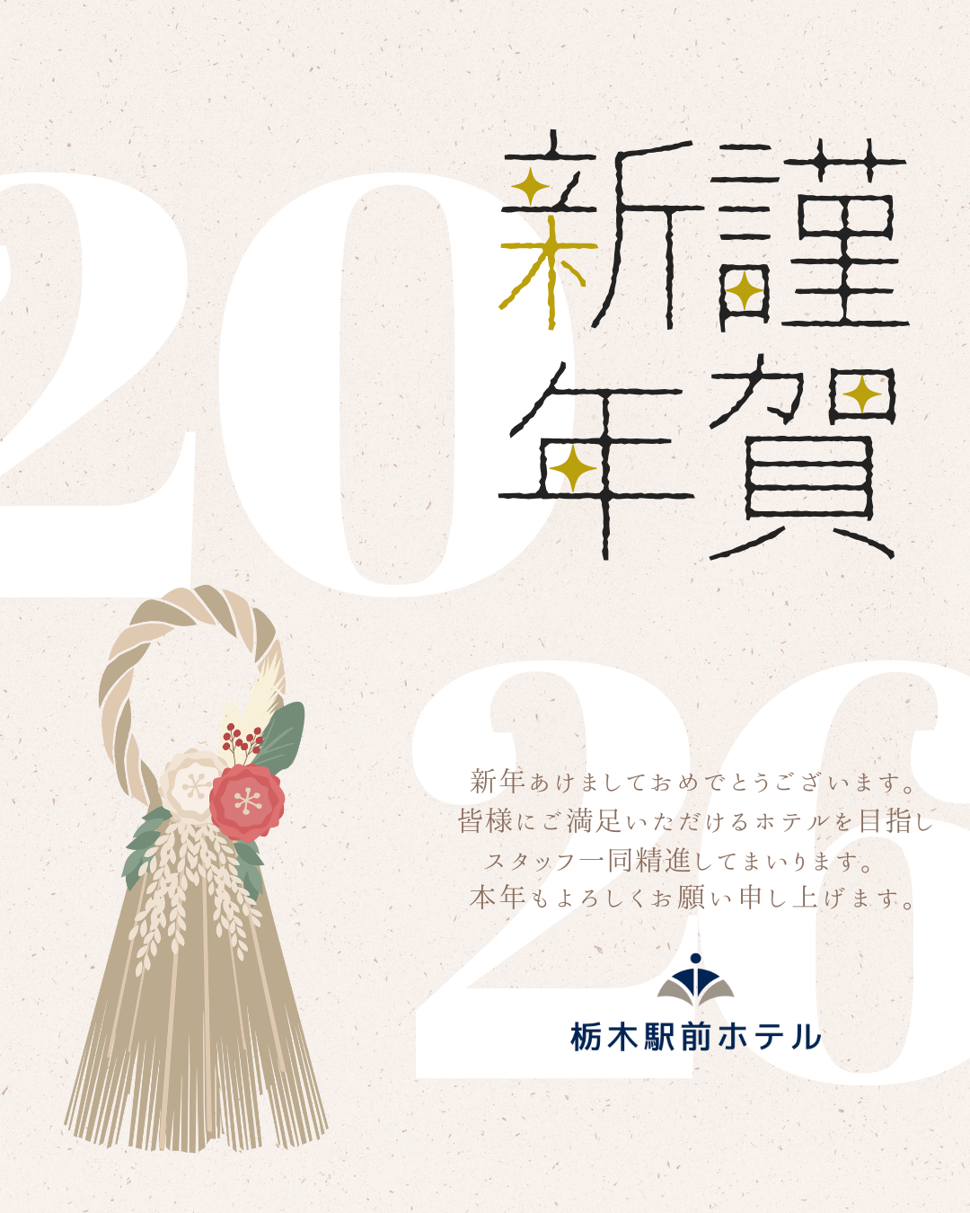 本年もお客様にゆったりと寛いでいただけるホテルを目指してスタッフ一同日々努めて参ります。